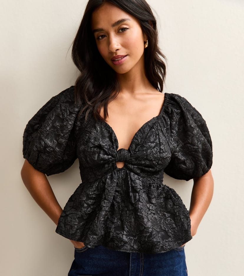 The New Look Black Jacquard Sweetheart Neck Top is made from jacquard.