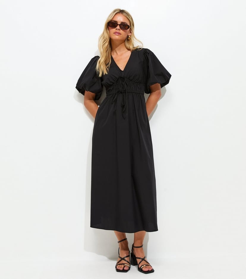 The New Look Black Puff Sleeve Midi Dress is ideal for daytime, casual, outings.