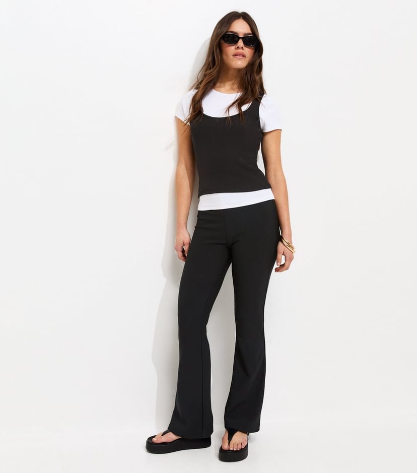 The New Look Black Rib Flared Trousers is made from jersey.