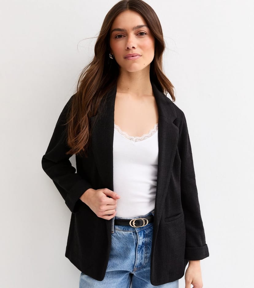The New Look Black Stretch Jersey Blazer is ideal for casual, work, day-to-night.