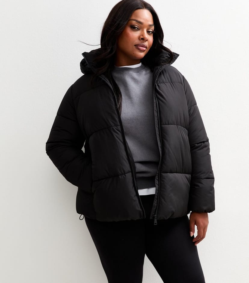 The New Look Black Cropped Puffer Jacket Plus Size is available in sizes 18.