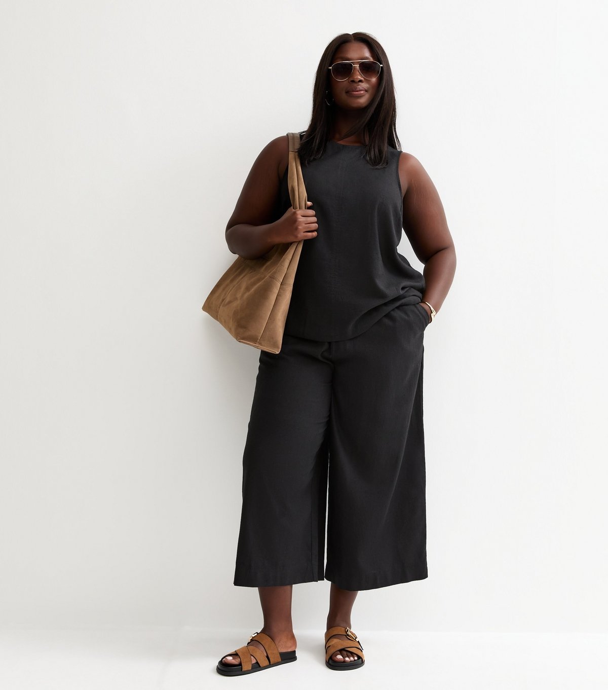 The New Look Black Linen Blend Cropped Trousers is available in sizes 18, 20, 22, 24, 26, 28.