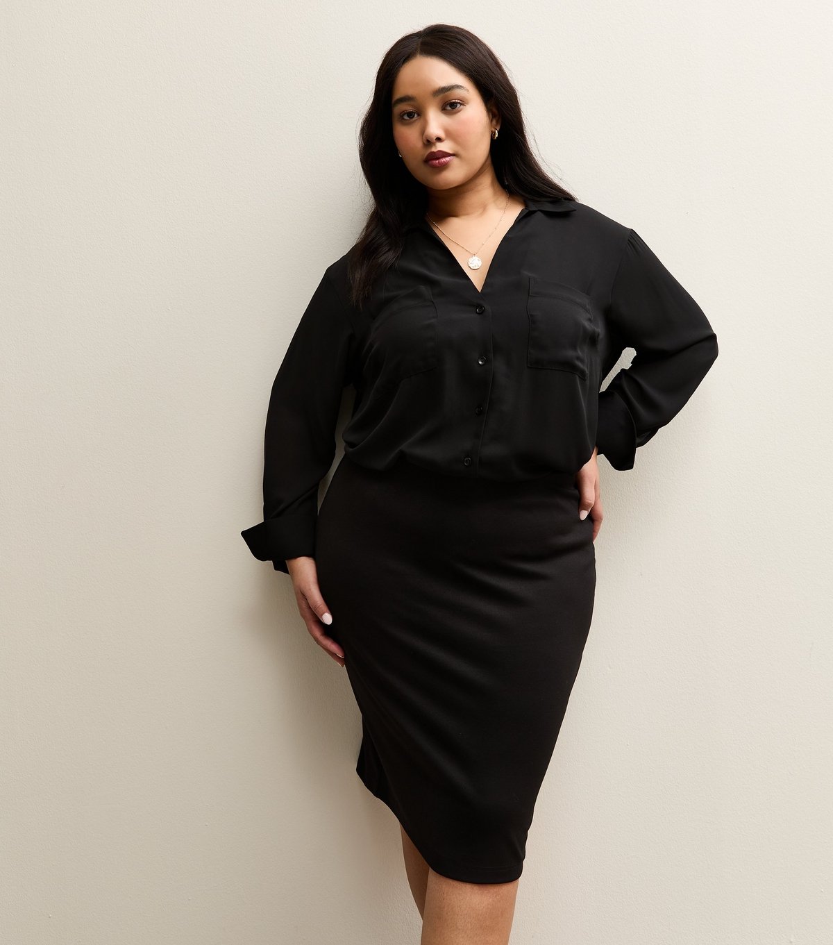 The New Look Black Ponte Pencil Mini Skirt Plus Size is ideal for casual, work, everyday.