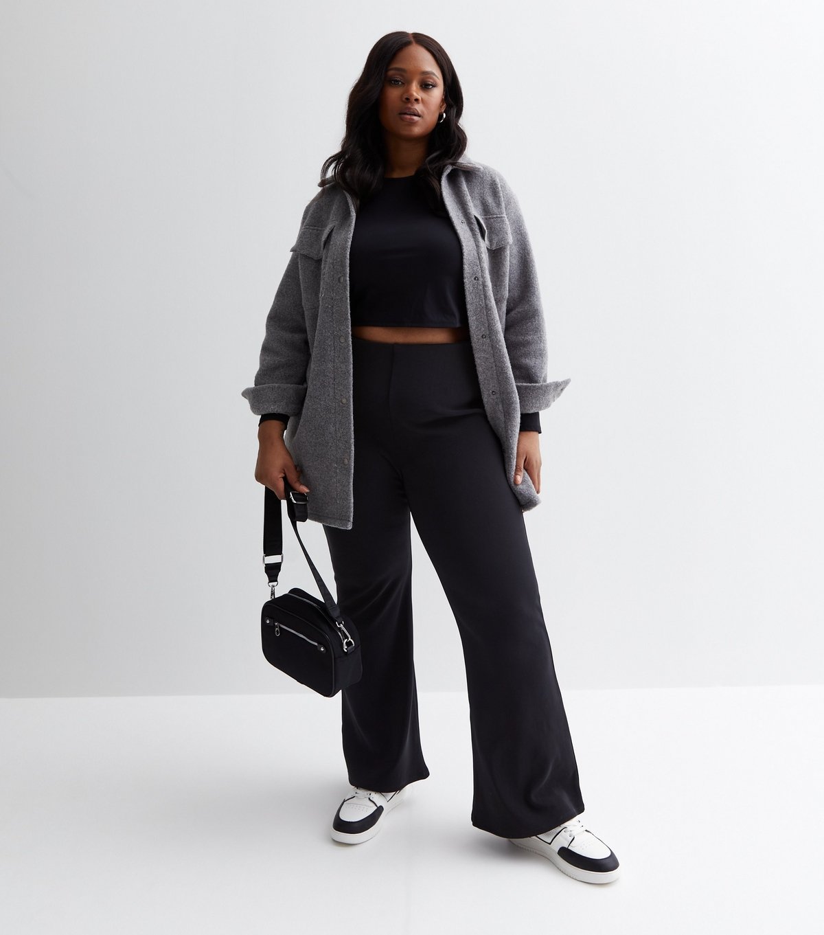 The New Look Black Ribbed Flared Trousers Plus Size is ideal for everyday, casual, work.