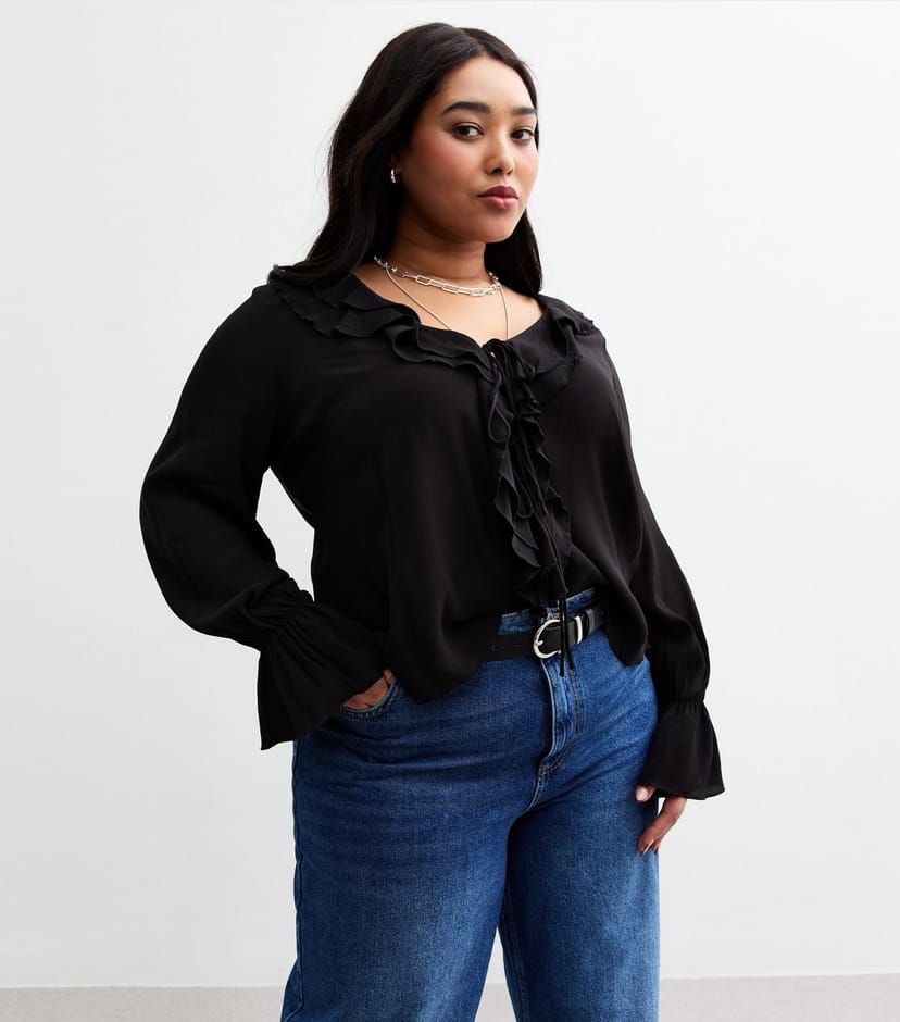 The New Look Black Ruffle Trim Blouse Plus Size is ideal for casual, evening, date-night.