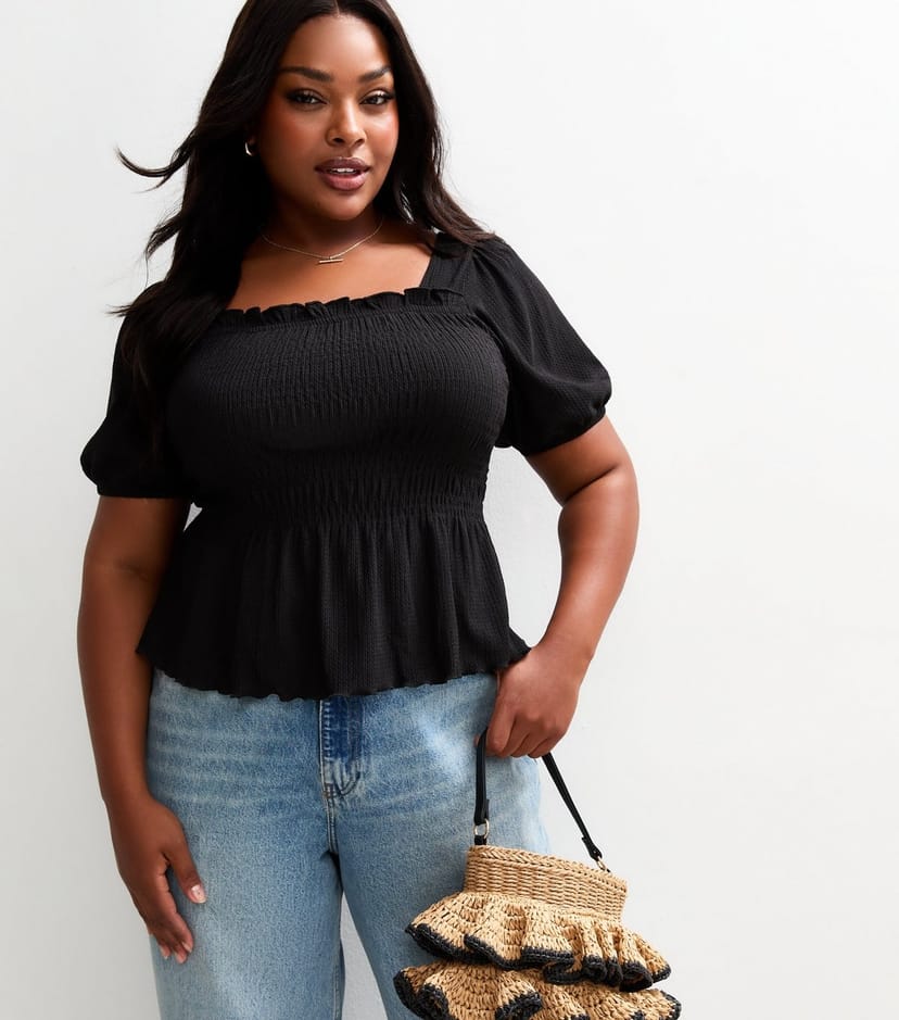 The New Look Black Jersey Puff Sleeve Top is available in sizes 24, 26, 28, 30.