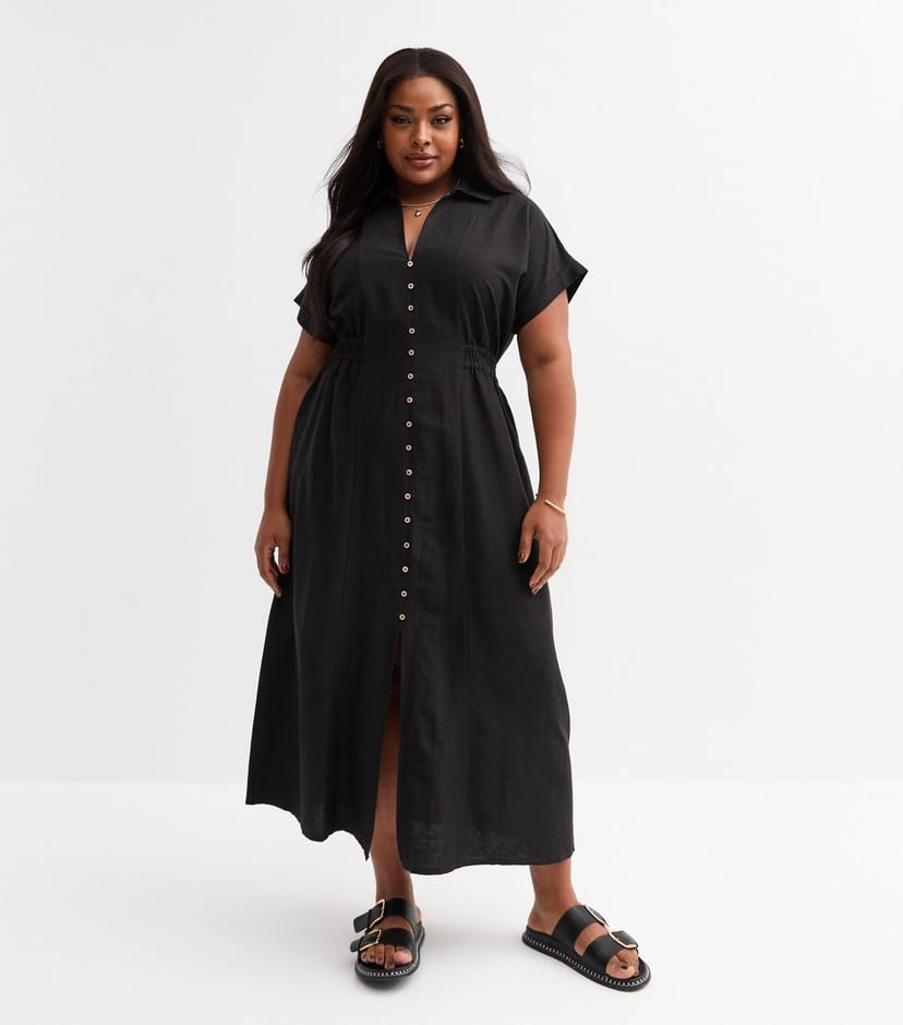 The New Look Black Woven Midi Dress for Plus Sizes is made from woven.