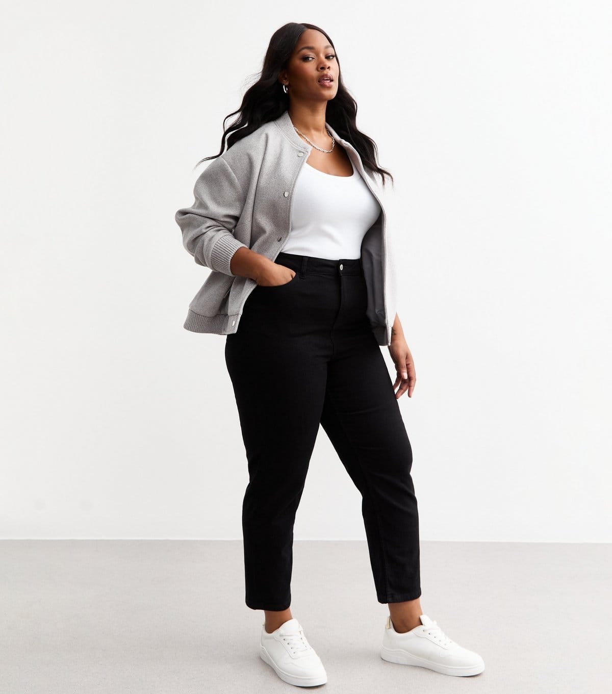 The New Look Black Slim Leg Plus Size Jeans is ideal for casual, everyday.