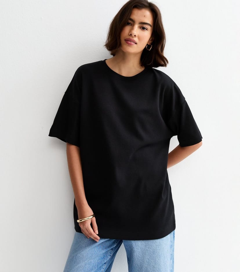 The New Look Black Heavyweight Cotton Oversized T-Shirt is available in sizes 10, 12, 14, 16, 18, 20, 6, 8.