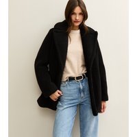 A versatile black borg coat from New Look, perfect for casual outings. Featuring a collared neckline and side slip pockets, this coat offers a relaxed fit and midi length. Ideal for weekend plans.