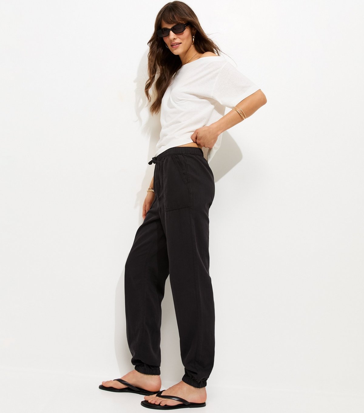 Versatile black cotton twill cargo trousers by New Look. Featuring an elasticated cuffed ankle design, these trousers are perfect for a relaxed fit and full-length style. Ideal for effortless, laid-back looks.