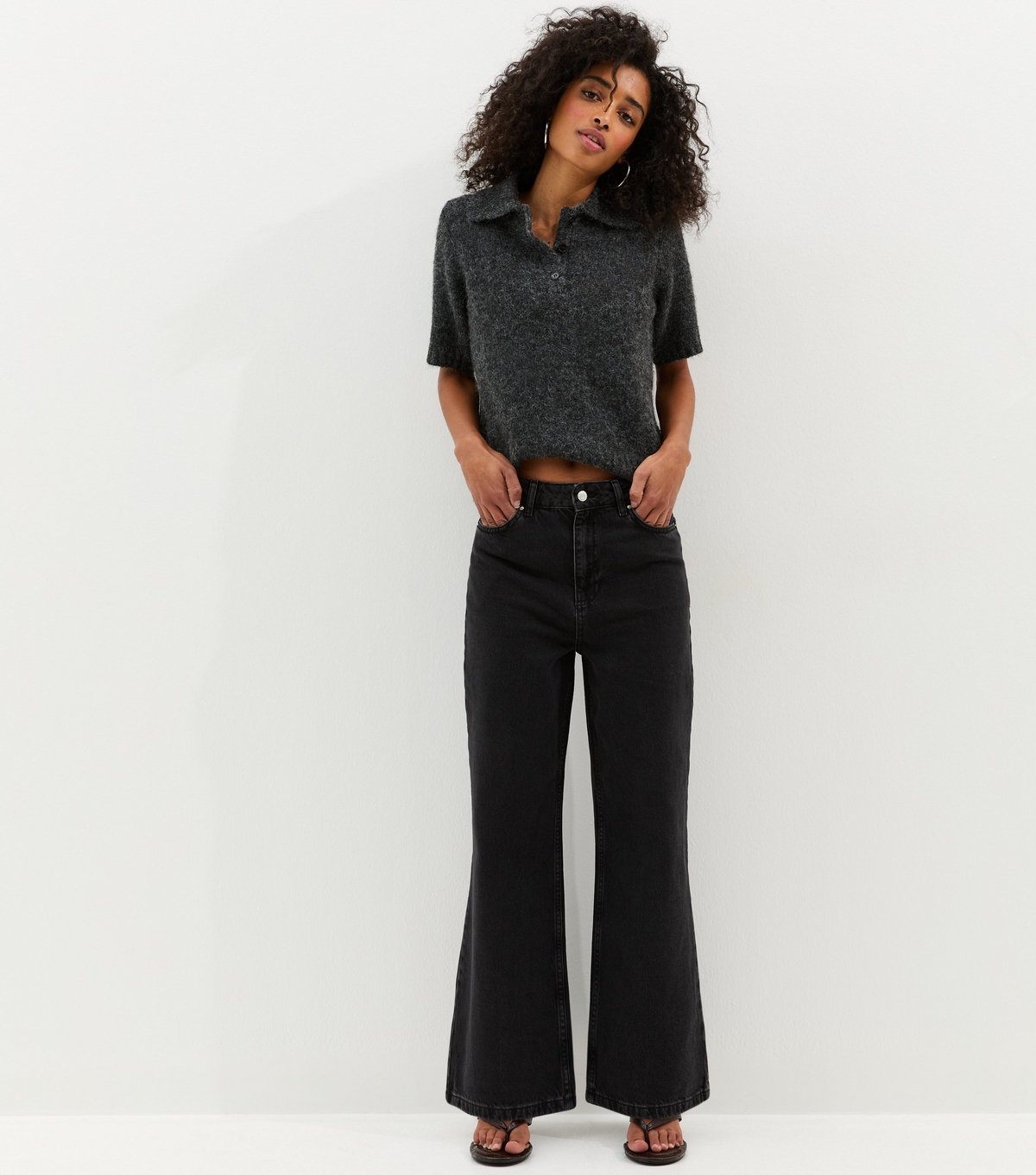 The New Look Washed Black High-Waist Wide Leg Jeans is made from denim.