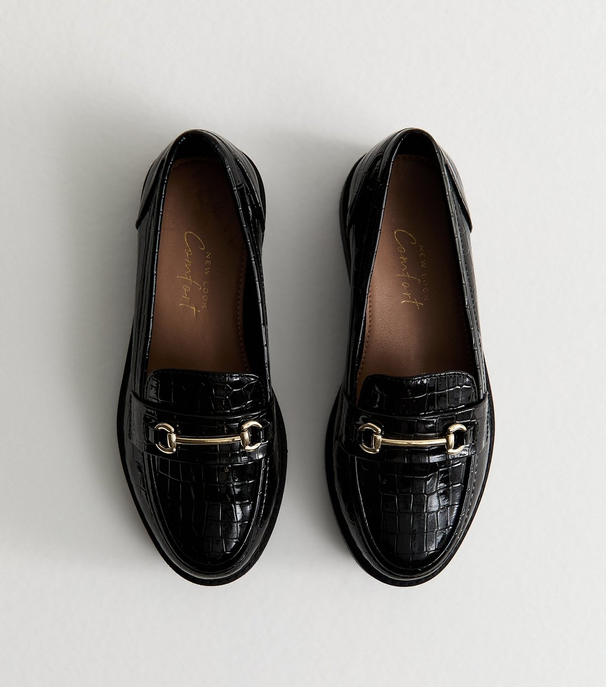 The New Look Black Faux Leather Platform Croc Loafers is available in sizes SIZE 3 - WIDE FIT, SIZE 4 - WIDE FIT, SIZE 5 - WIDE FIT, SIZE 6 - WIDE FIT, SIZE 7 - WIDE FIT, SIZE 8 - WIDE FIT, SIZE 9 - WIDE FIT.