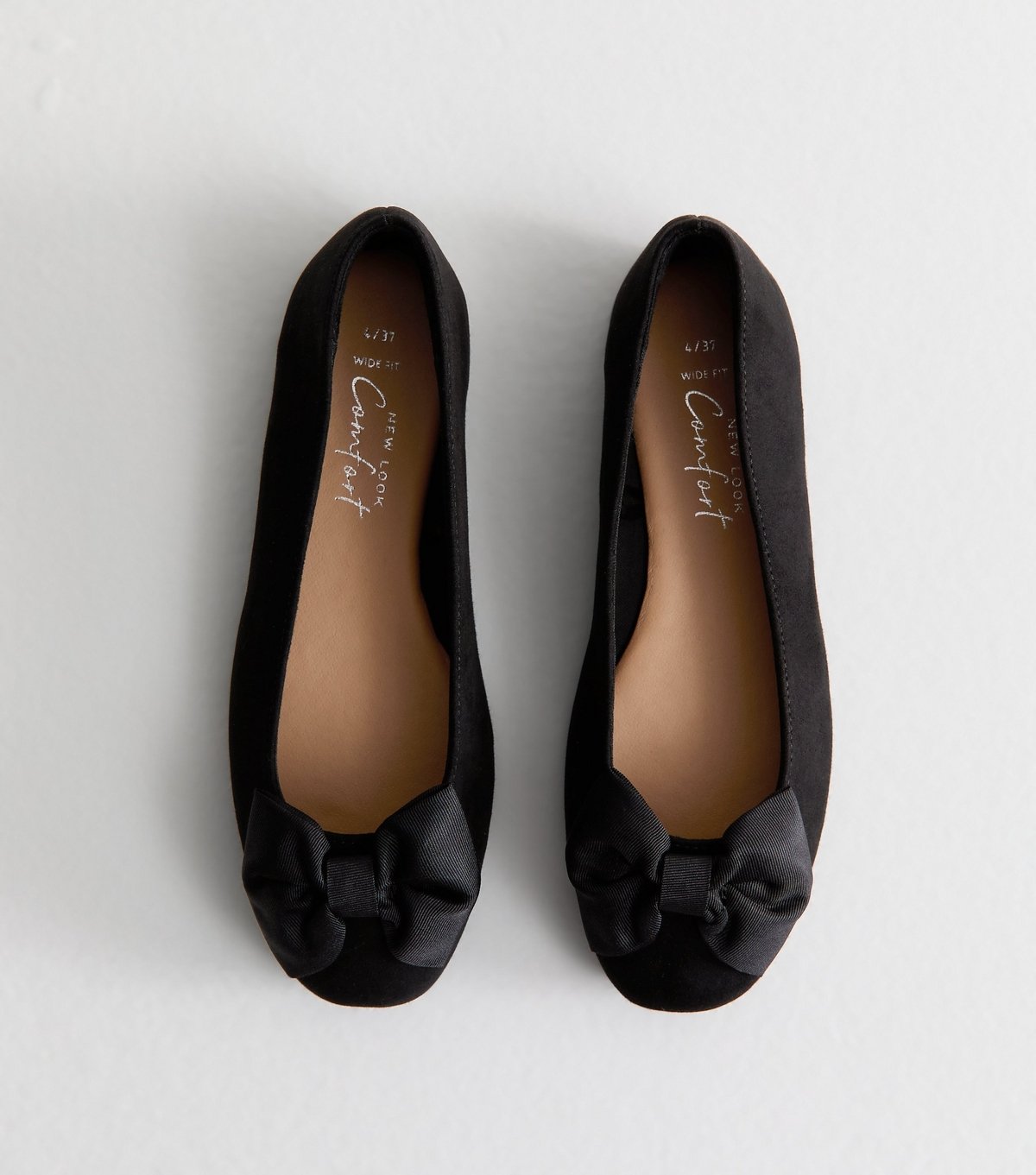 The New Look Black Faux Suede Bow Ballet Flats is available in sizes 3, 4, 5, 6, 7, 8, 9.