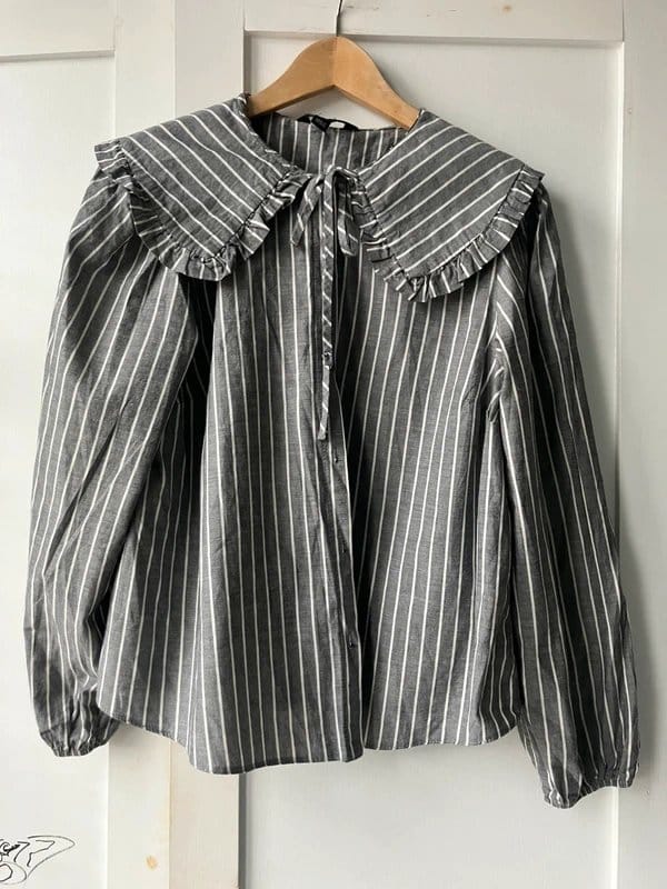 The New Look Striped Sailor Blouse in White and Grey is available in sizes L.
