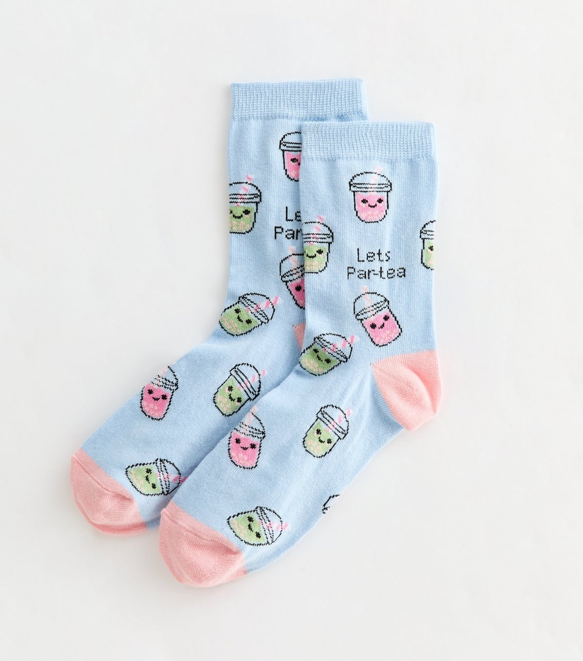 The New Look Blue Bubble Tea Patterned Ankle Socks is available in sizes ONE SIZE.