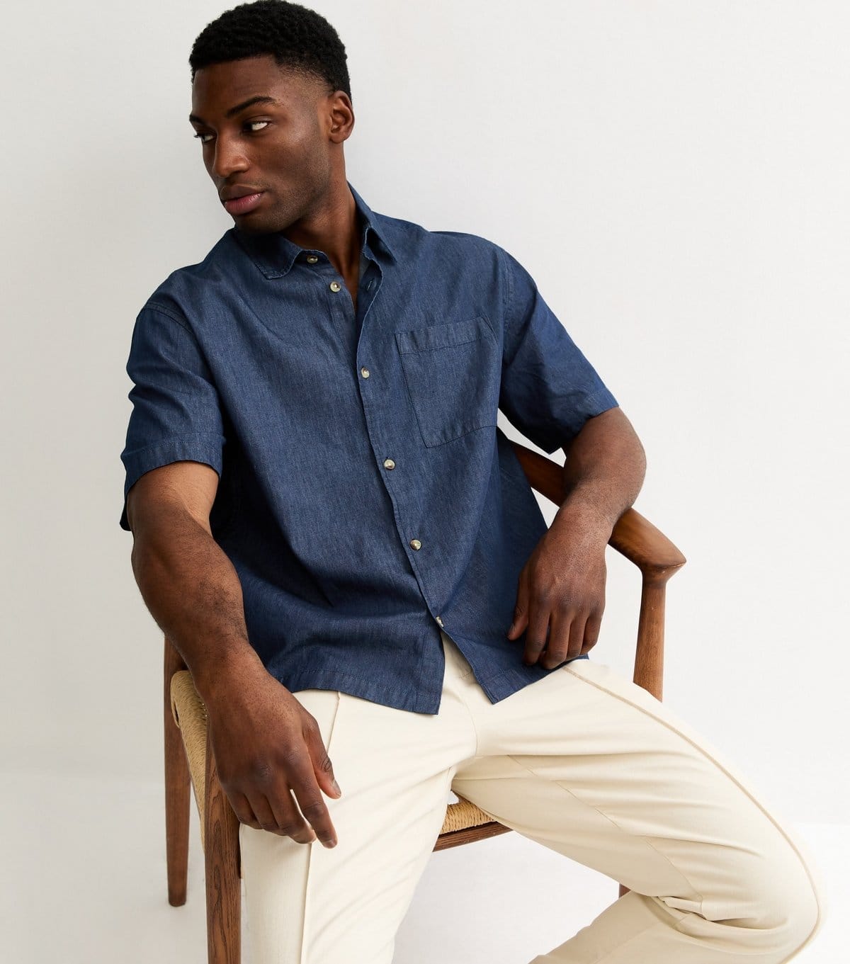 The New Look Blue Denim Boxy Short Sleeve Shirt is ideal for casual, semi-casual, everyday.