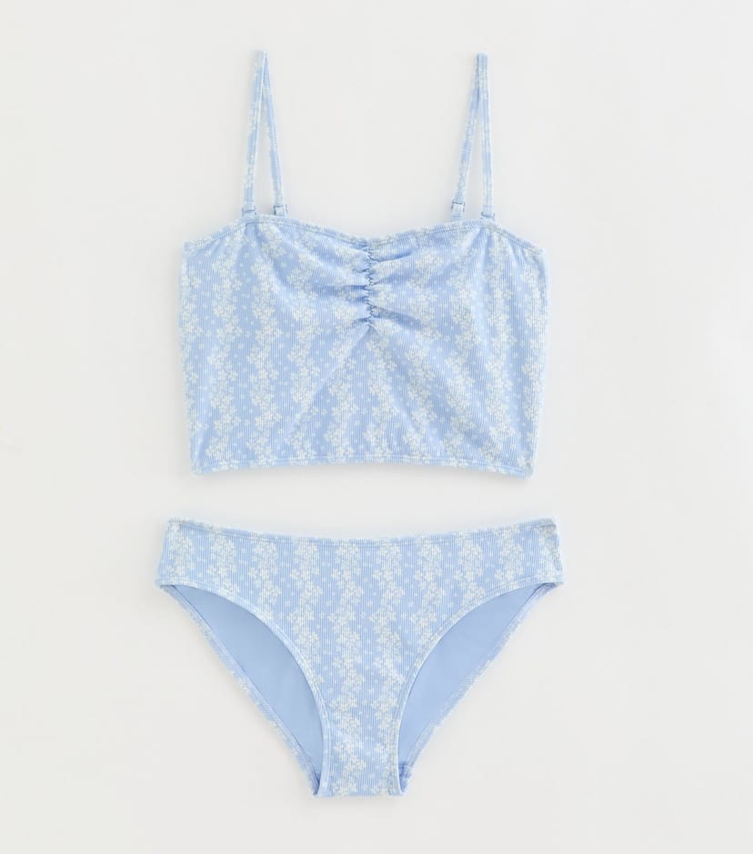 The New Look Blue Floral Print Tankini Set for Girls is ideal for beach, pool, casual.