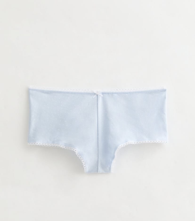 The New Look Blue Spotty Boxer Briefs for Girls is made from cotton jersey.