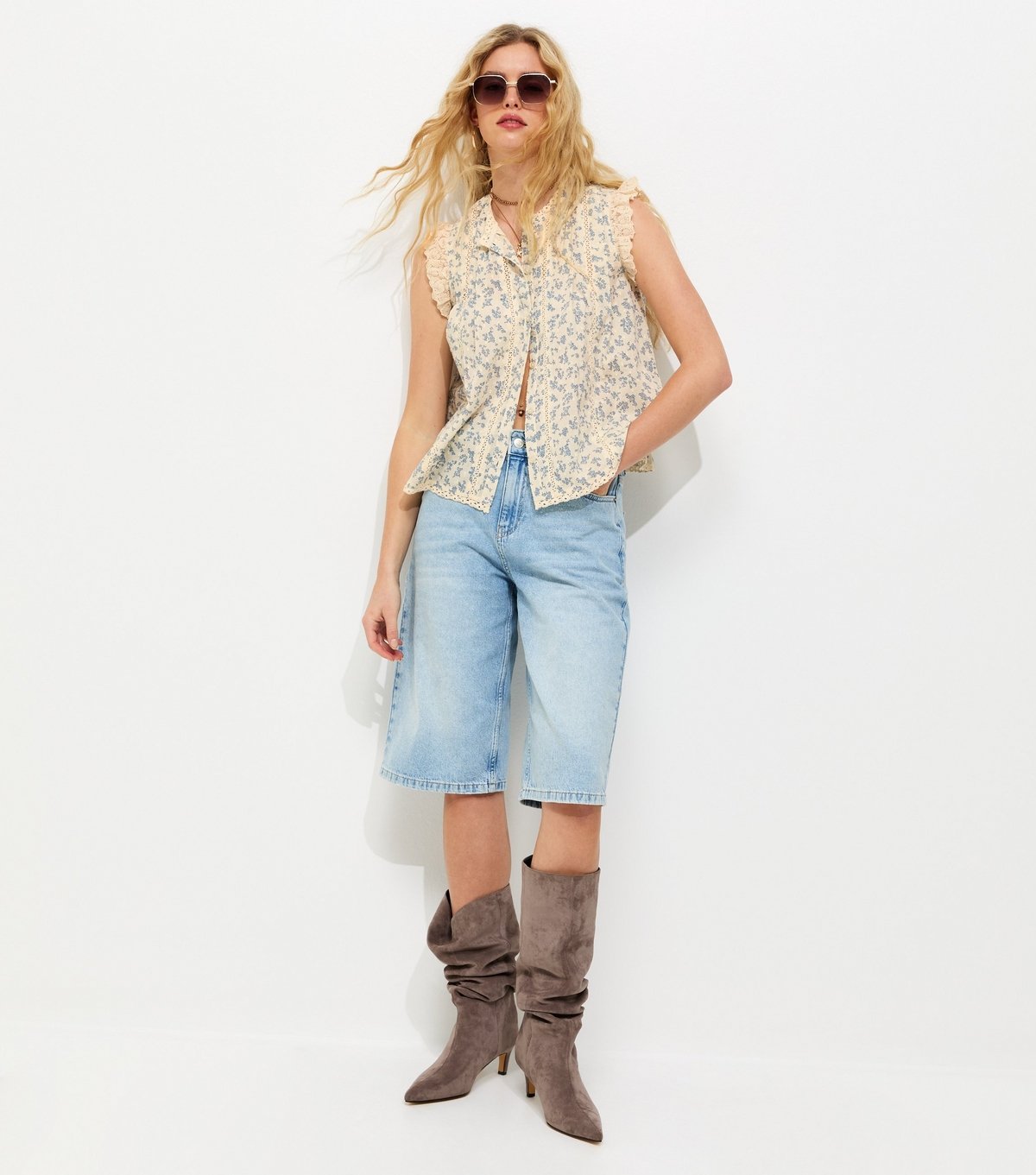 The New Look Blue Dobby Floral Print Lace Trim Pleated Blouse is made from dobby.