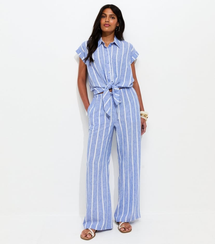The New Look Blue Striped Wide Leg Jumpsuit is available in sizes 10, 12, 14, 16, 18, 20, 22.