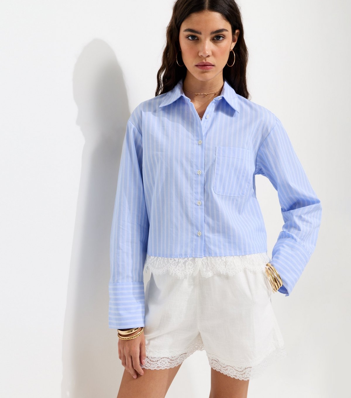 The New Look Blue Striped Lace Trim Long Sleeve Shirt is ideal for casual, smart-casual, daytime.