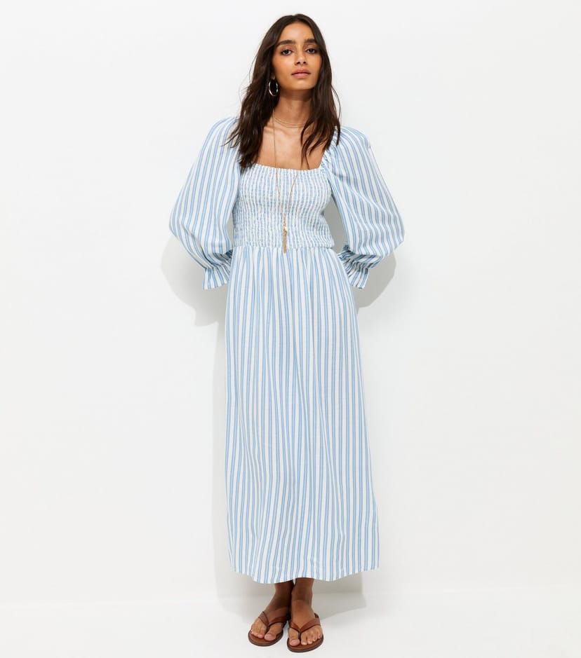 The New Look Blue Striped Midi Dress is ideal for casual, daytime, beach.