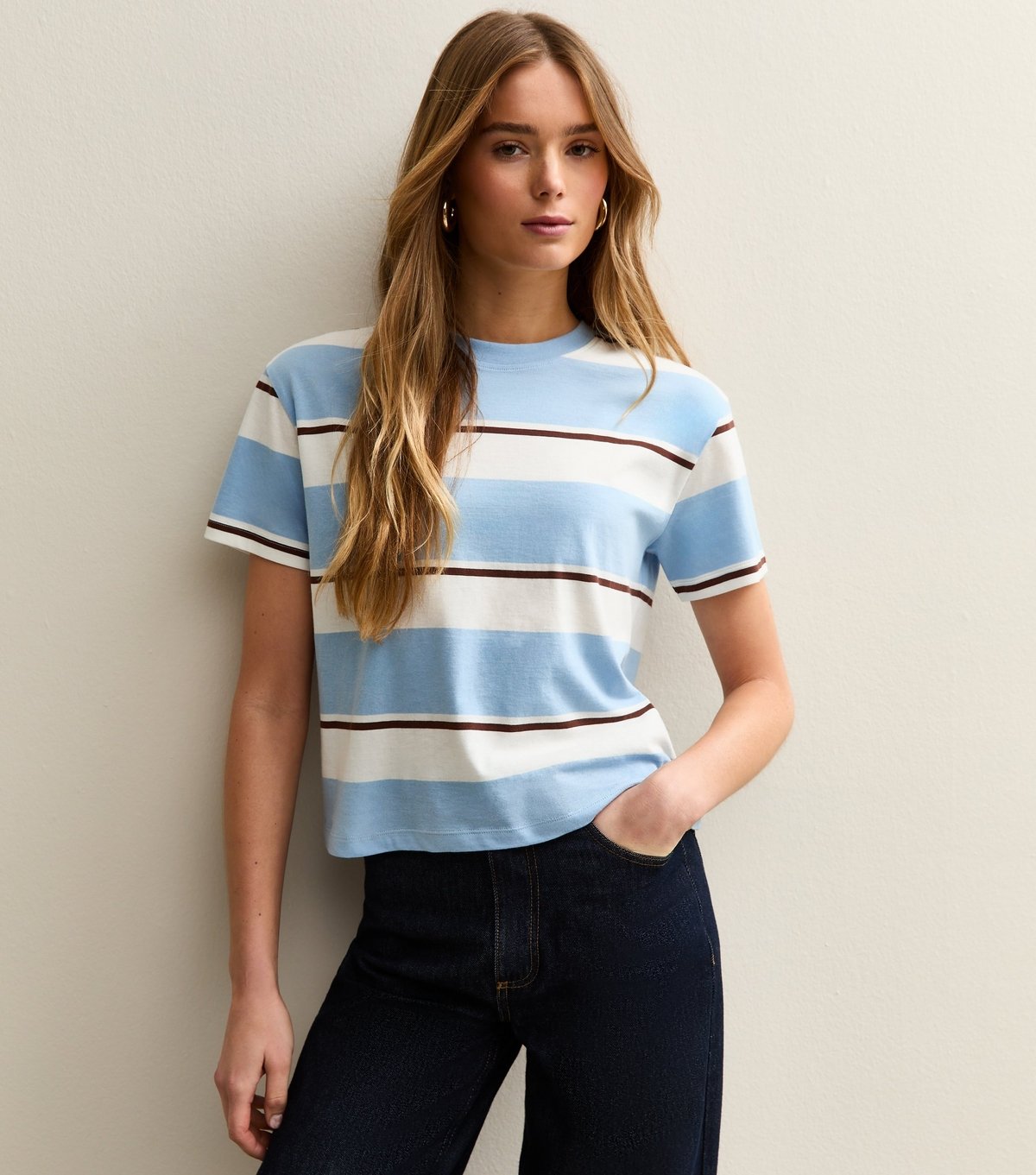 The New Look Light Blue Cotton Striped Boxy T-Shirt is ideal for casual, everyday.