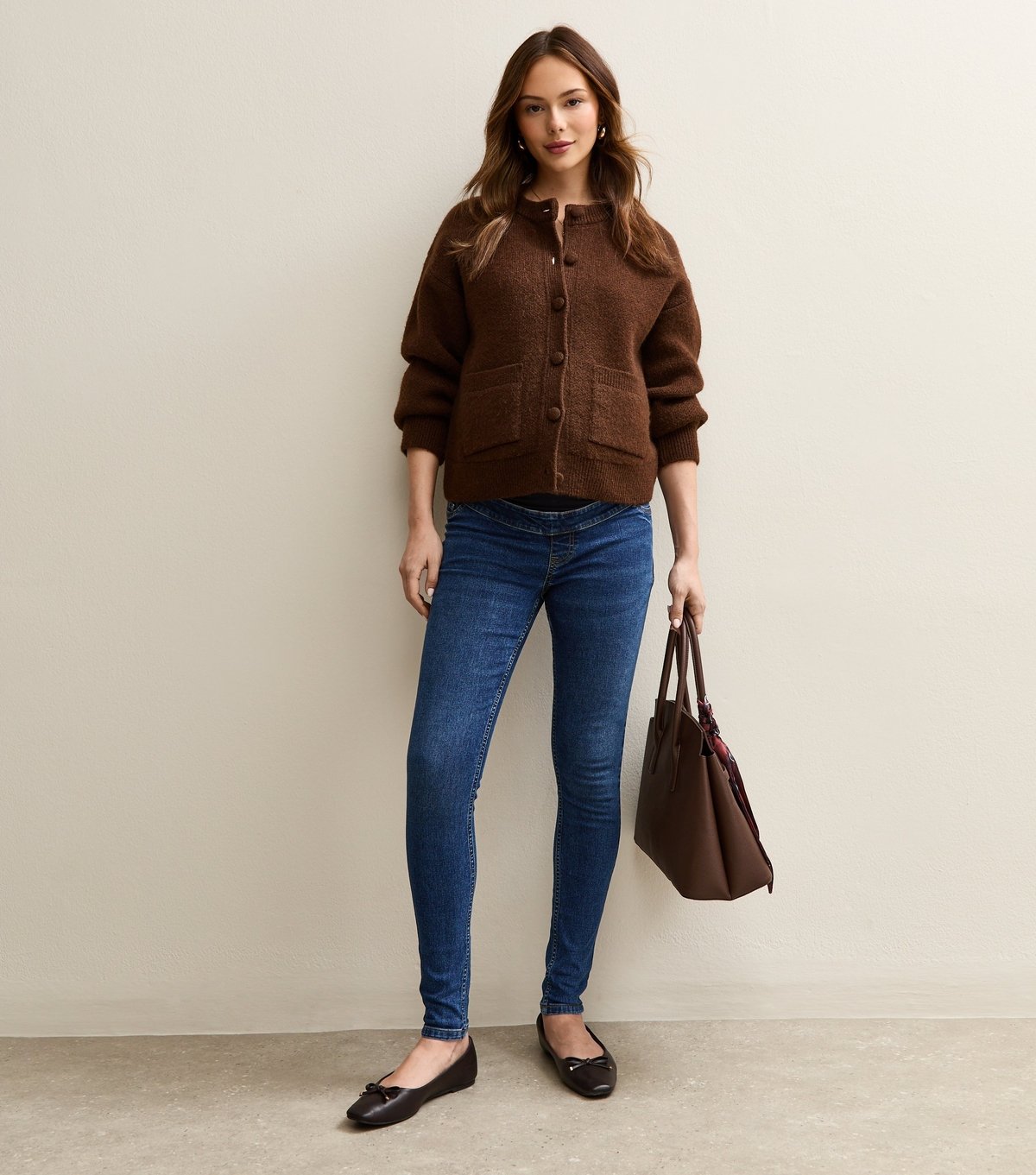 Stylish maternity jeans in a versatile blue wash from New Look. Designed with a stretchy waist panel for comfort during pregnancy, these jeans feature sculpting seams for extra shaping. Perfect for everyday wear.