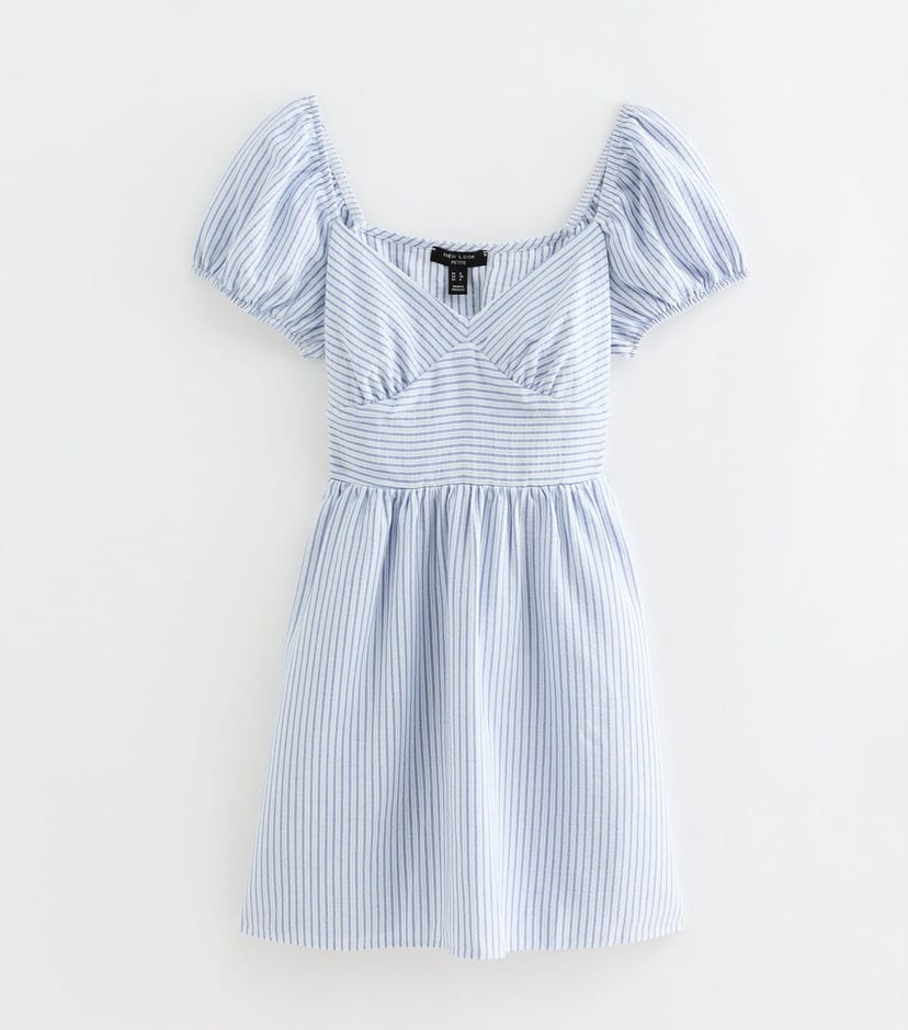The New Look Blue Striped Puff Sleeve Mini Dress is ideal for casual, sunny, weekend.