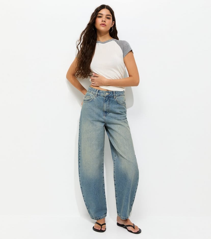 The New Look Blue Barrel Leg Jeans is ideal for casual, everyday.