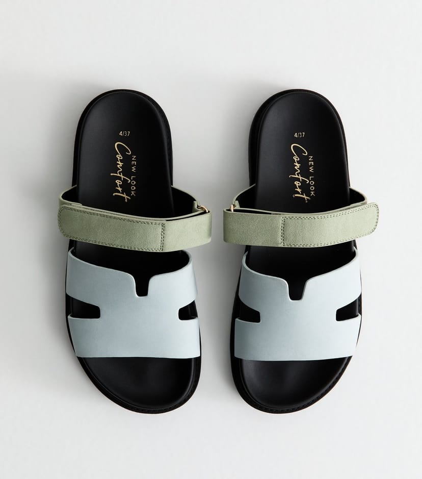 Step into comfort and style with these blue faux leather chunky strap sandals from New Look. Featuring a moulded footbed for all-day comfort, these sandals are defined by their bold, chunky straps across the front. Perfect for a vegan lifestyle, they are completely animal-free and registered by The Vegan Society.