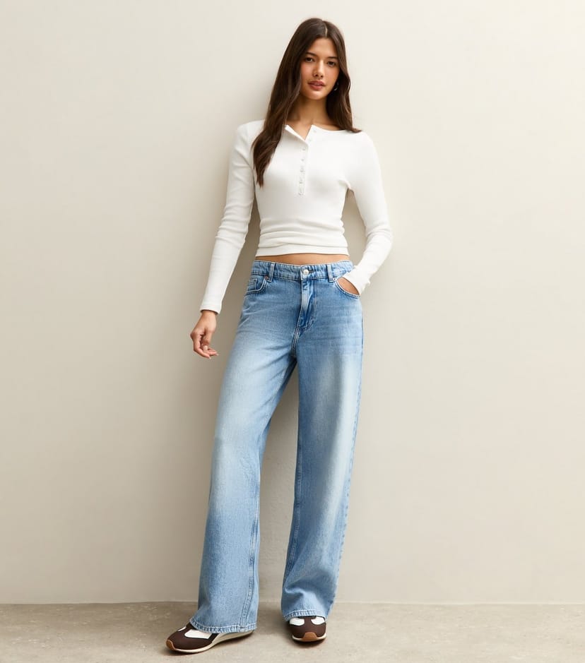 The New Look Mid Blue Low Rise Wide Leg Jeans is ideal for casual, everyday.