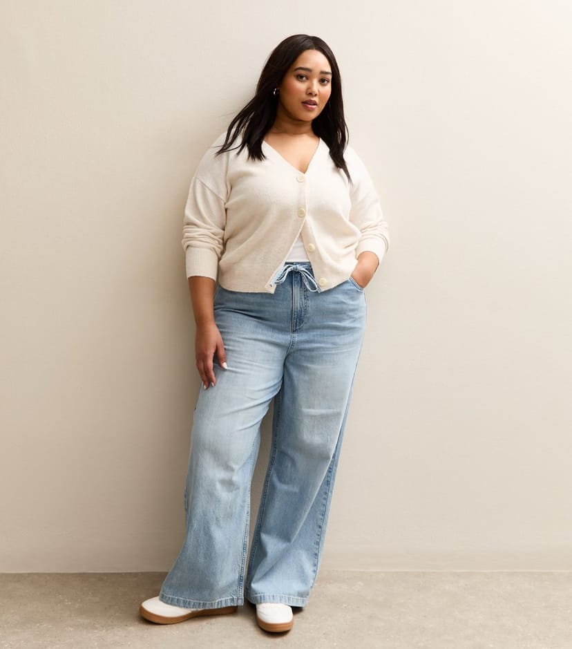 The New Look Light Blue Denim Wide-Leg Jeans is available in sizes 18, 20, 22, 24, 26, 28, 30, 32.
