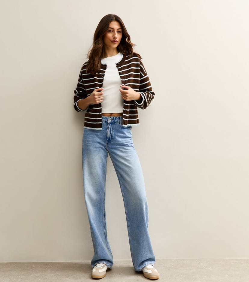 The New Look Mid Blue Low Rise Wide Leg Jeans is made from denim.