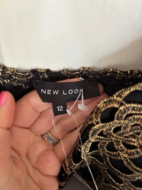 The New Look Cocktail Party Strappy Dress with Gold Design is available in sizes M.
