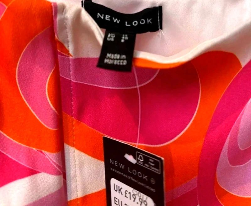 The New Look Swirl Print Corset Top in Pink and Orange is available in sizes M.