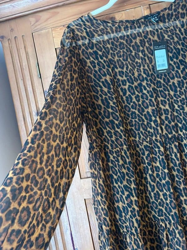The New Look Brown Animal Print Chiffon Dress is available in sizes L.