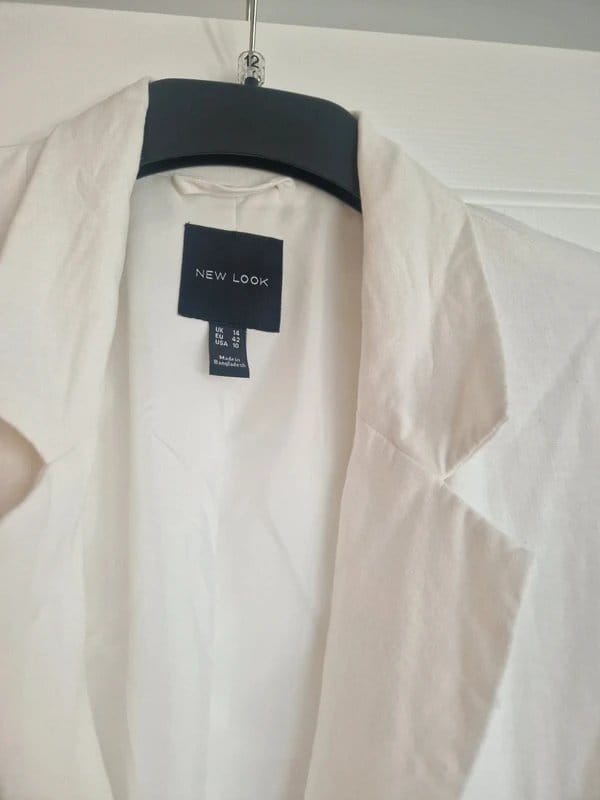 The New Look White Cotton Blazer is available in sizes M.
