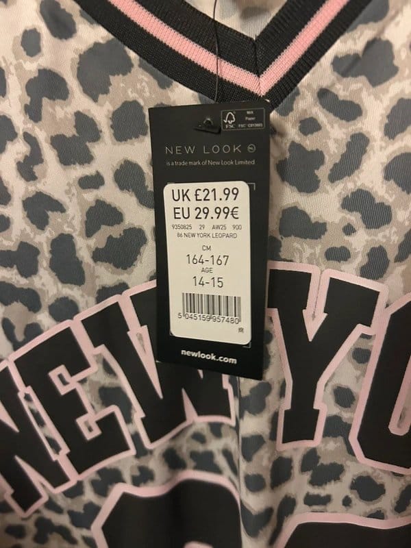 View Vinted's returns policyTrendy leopard print jersey from New Look in grey and pink. Features a crew neckline and short sleeves. Perfect for a casual look.