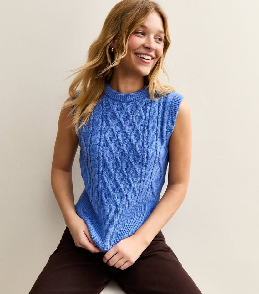 The New Look Bright Blue Cable Knit Vest is ideal for casual, everyday.