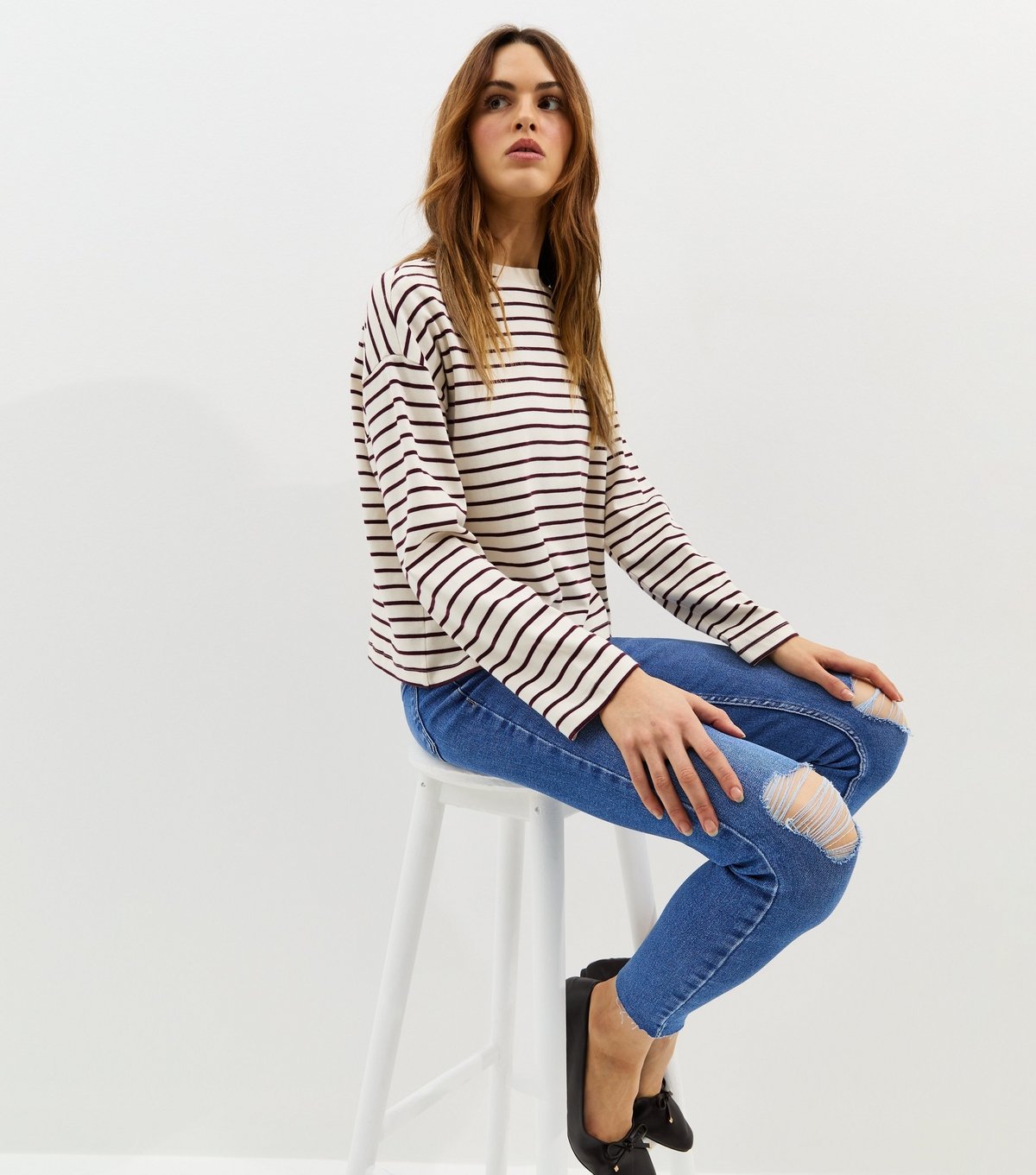 Stylish bright blue ripped skinny jeans from New Look. These jeans feature a high waist, skinny fit, and ankle-grazing legs. The stretch denim fabric ensures comfort and flexibility.