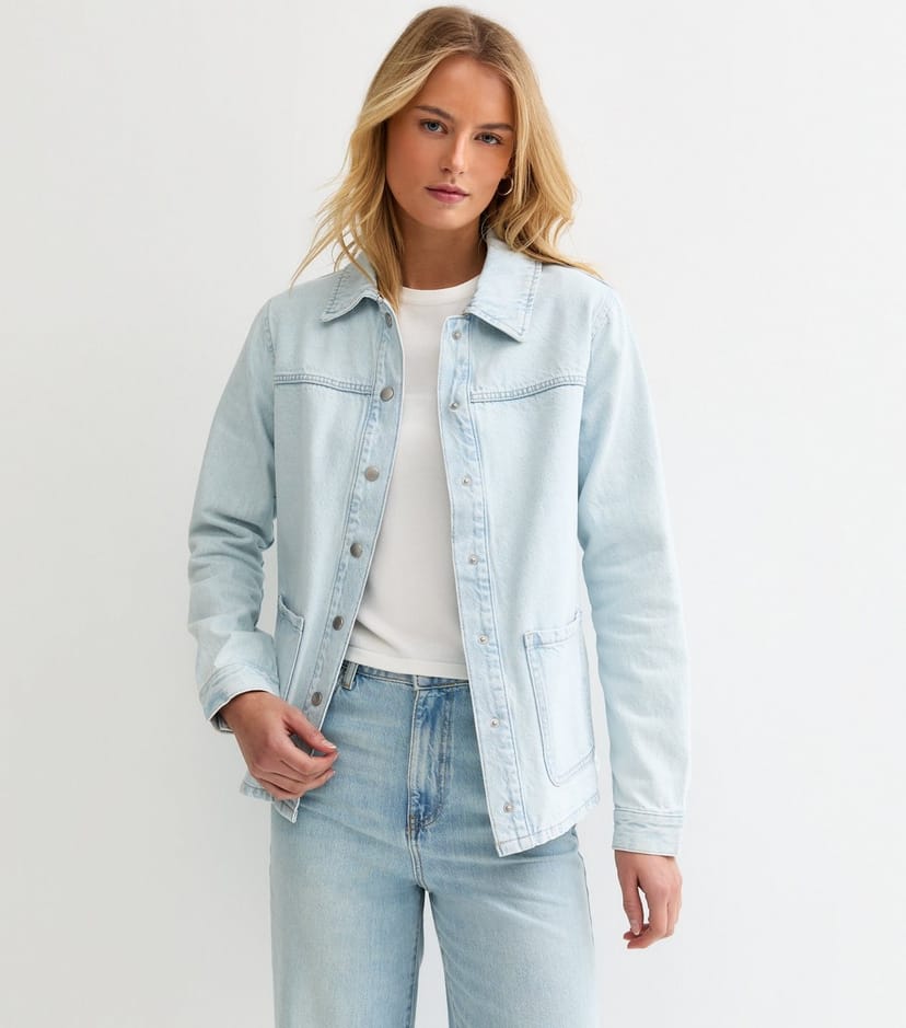 The New Look Light Blue Denim Shacket is available in sizes 10, 12, 14, 16, 18, 20, 8.