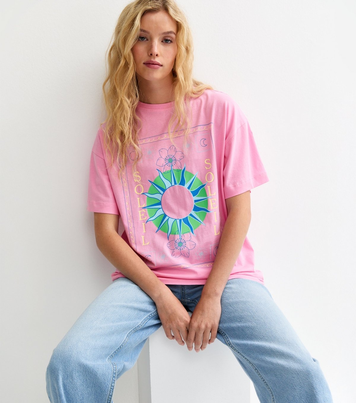 The New Look Bright Pink Soleil Mystic Print Oversized T-Shirt is made from jersey.