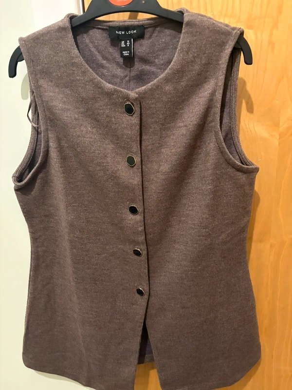 A beautifully brown knitted waistcoat from New Look. It features a button closure and a vest style for a classic and versatile look.