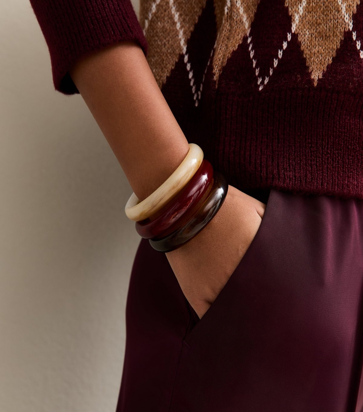 The New Look Pack Of 3 Brown Resin Bangles is made from resin.