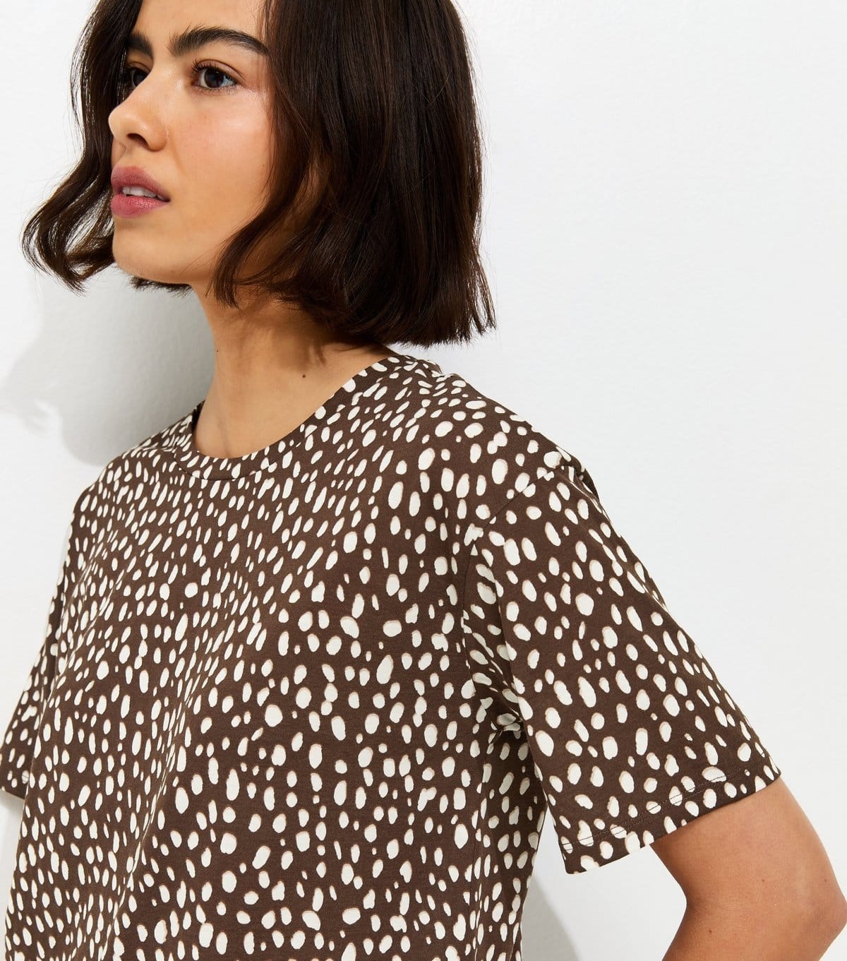 View New Look UK's returns policyStylish brown abstract spot print easy t-shirt from New Look. Made from soft jersey fabric, it features a crew neckline and a relaxed fit. Perfect for casual wear.