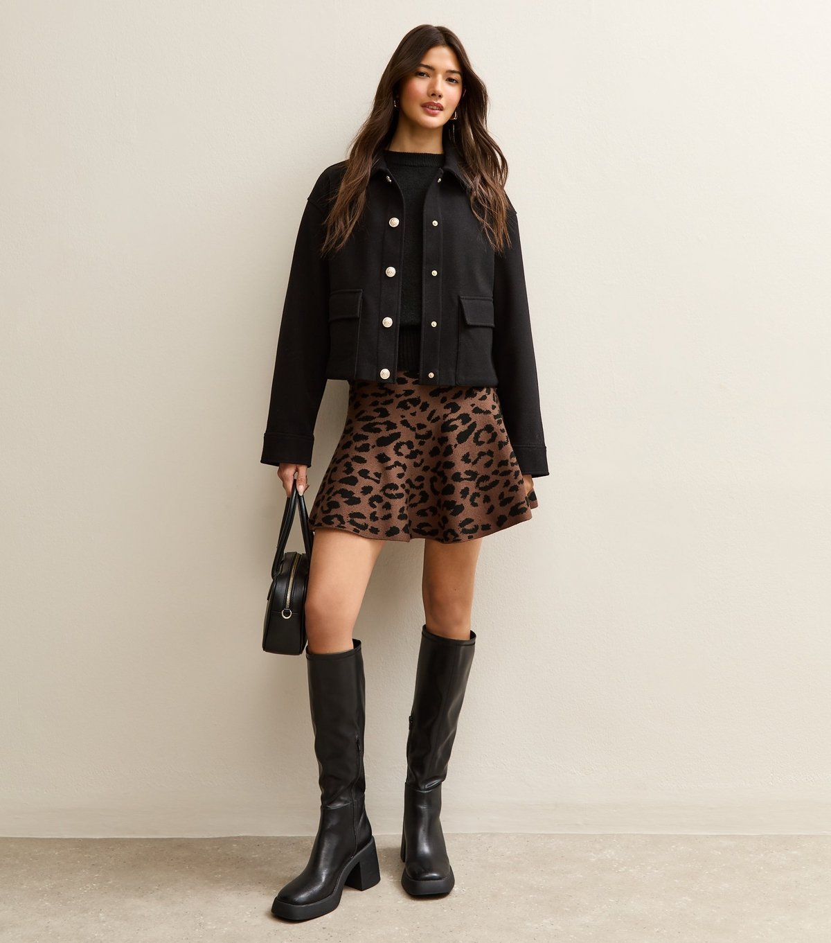 The New Look Brown Animal Print Mini Skater Skirt is made from woven.