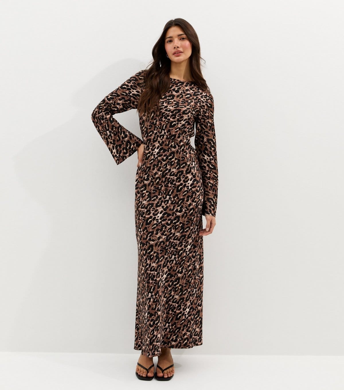 The New Look Brown Animal Print Cowl Back Maxi Dress is available in sizes 10, 12, 14, 16, 18, 20, 6, 8.