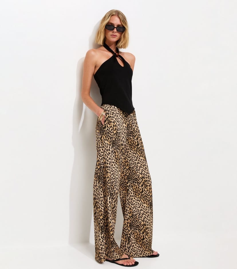 The New Look Brown Animal Print Wide Leg Trousers is ideal for casual, evening, date-night.